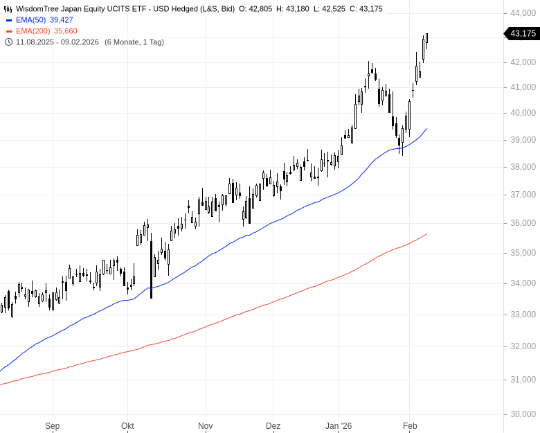 - WisdomTree Japan Equity UCITS ETF – USD Hedged – WKN: A14SCB – ISIN: IE00BVXC4854 – Kurs: 43,175 € (L&S)