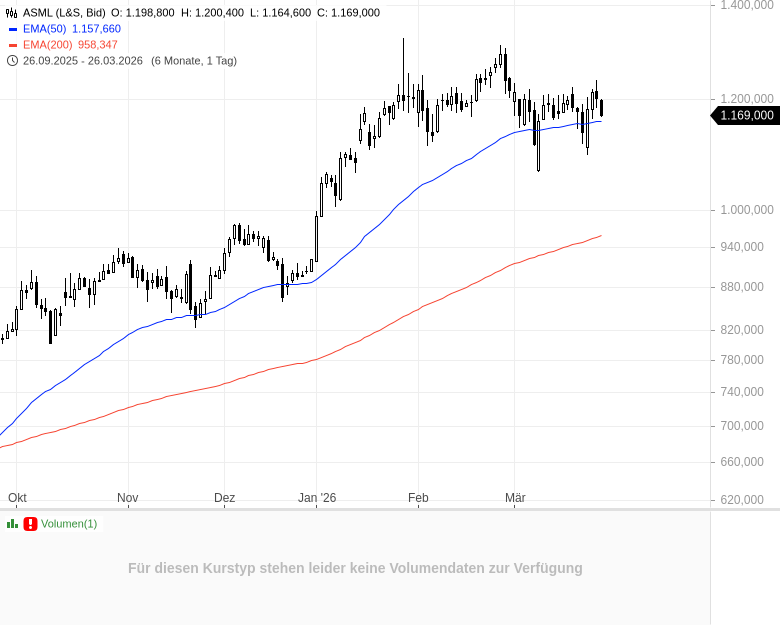 - ASML – WKN: A1J4U4 – ISIN: NL0010273215 – Kurs: 1.172,000 € (XETRA)