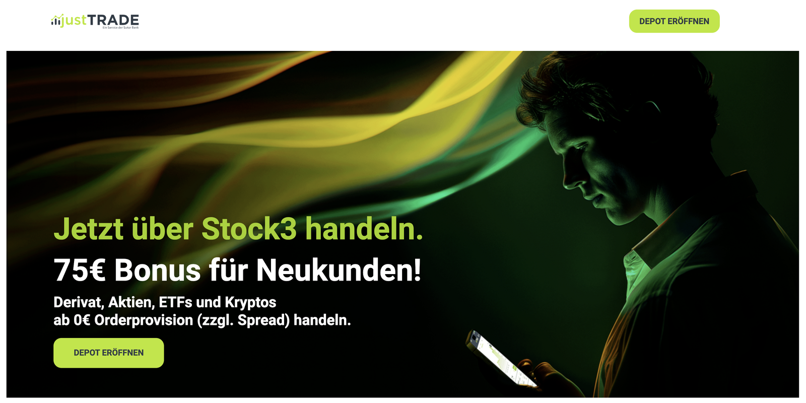 Mit einem justTrade Depot kannst Du Aktien- & ETF-Trades optimal direkt über stock3 abbilden.