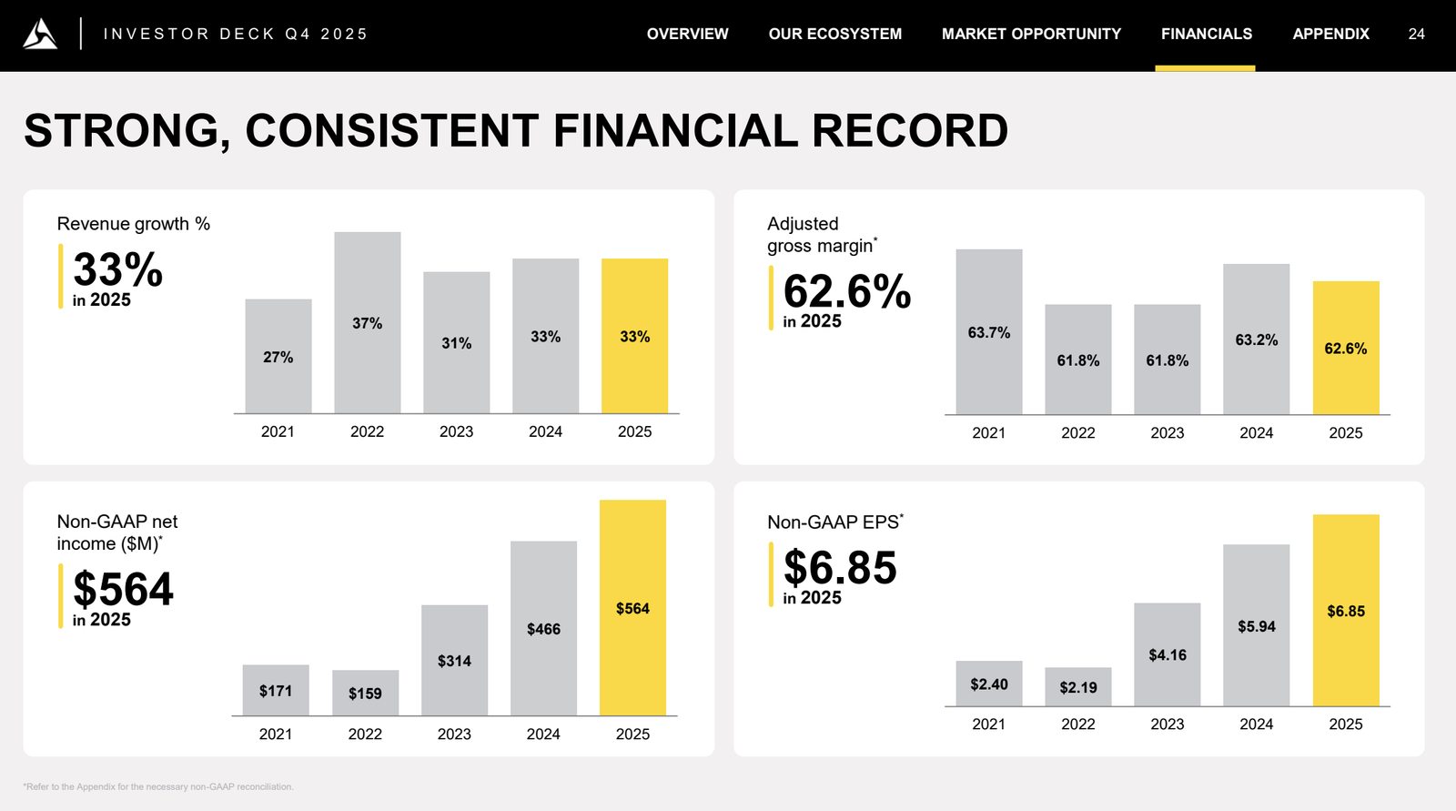 Die Bruttomarge fällt nach GAAP von rund 60,1 % im Vorjahr auf 57,9 %. Grund sind hier Zölle und mehr „Platform Solutions“ im Device‑Mix. Denn Platform Solutions wachsen extrem schnell und drücken die Hardware‑Marge kurzfristig, öffnen aber neue Kundenfälle und stärken das Ökosystem.