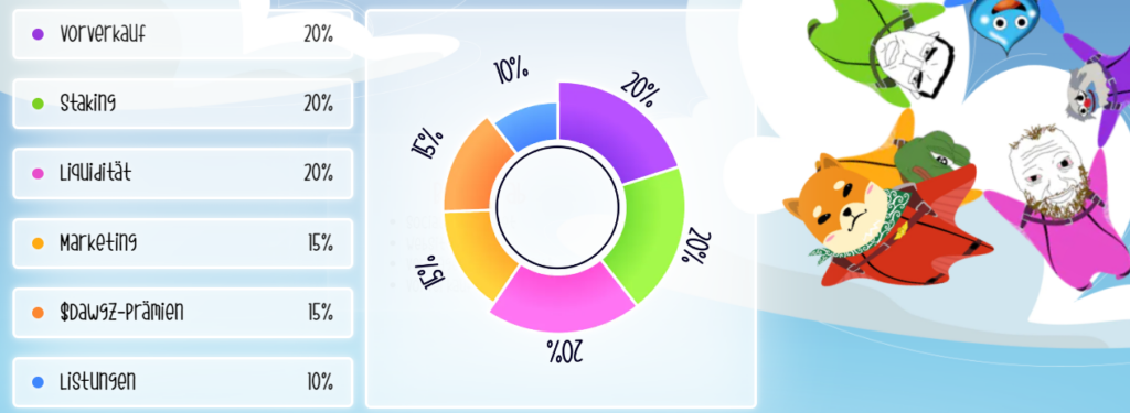 Damit ein Meme-Coin eine erfolgreiche Zukunft vor sich hat, ist neben der maximalen Reichweite die optimale Verteilung der zur Verfügung stehenden Tokens essentiell, die sich bei Base Dawgz in sechs Kategorien unterteilt. Bei Base Dawgz stehen insgesamt 20 Prozent der Tokens für den Vorverkauf zur Verfügung sowie 15 Prozent für das Marketing. Darüber hinaus sind weitere 20 Prozent für ein Staking-Programm eingeplant, welches erst kürzlich gestartet ist. Die Listings an den Kryptobörsen werden darüber hinaus mit 10 Prozent der Tokens unterstützt, neben 20 Prozent für die allgemeine Liquidität. Die verbleibenden 15 Prozent sind für eine Vielzahl an Prämien vorgesehen, die für die Bindung aufgewendet werden sollen und somit entscheidend zur kontinuierlichen Kurssteigerung beitragen.