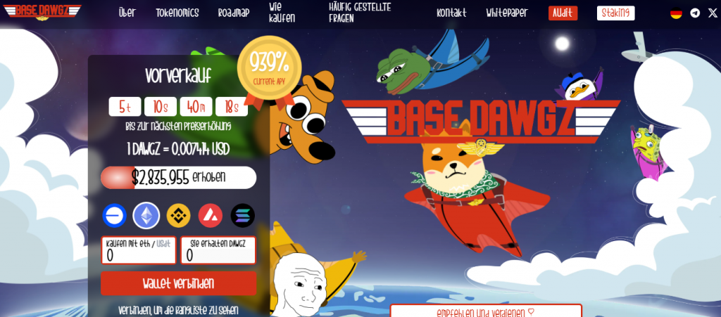 Wie unschwer zu erkennen ist, ist Base Dawgz alles andere als ein standardmäßiger Meme-Coin und kann sich damit von der breiten Masse abheben. Insbesondere durch das Prinzip des Share-to-Earn wird maßgeblich zur Maximierung der Reichweite beigetragen, die ein wichtiger Erfolgsfaktor eines Meme-Coins ist. Für Experten ist die Chance dementsprechend groß, dass mit Base Dawgz er nächste Meme-Coin in den Startlöchern steht, der eine langfristige Perspektive hat.
