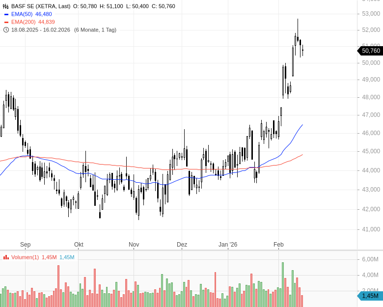 • BASF SE – WKN: BASF11 – ISIN: DE000BASF111 – Kurs: 50,760 € (XETRA)