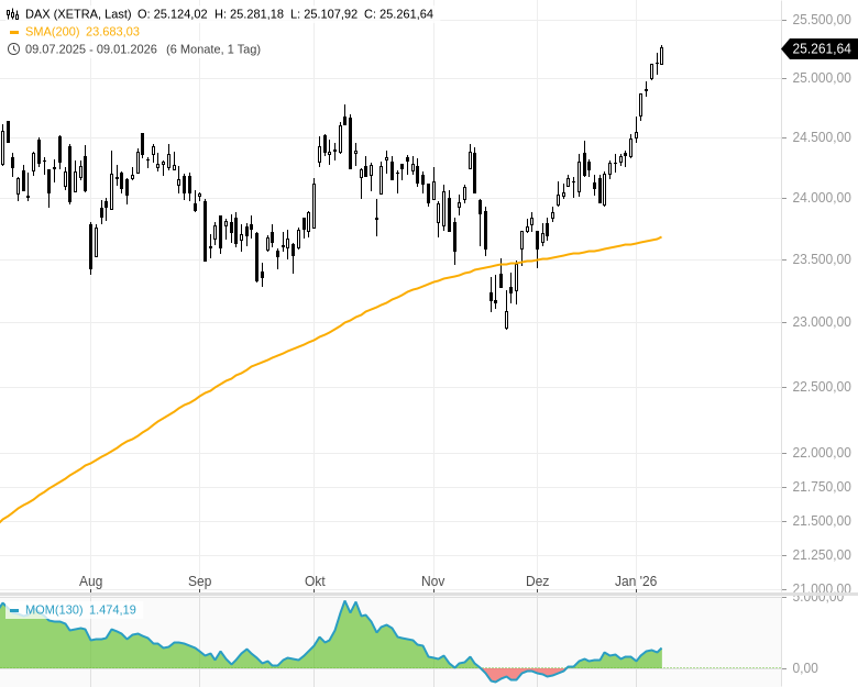 Der DAX über 25.000 Punkten ist ein bemerkenswerter Meilenstein. Mich wundert, dass die Hoffnung auf sinkende Ölpreise durch die Venezuela-Intervention so stark die Inflationserwartungen beeinflusst.