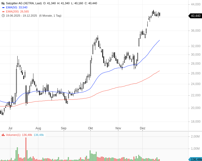 - Salzgitter AG – WKN: 620200 – ISIN: DE0006202005 – Kurs: 40,440 € (XETRA)