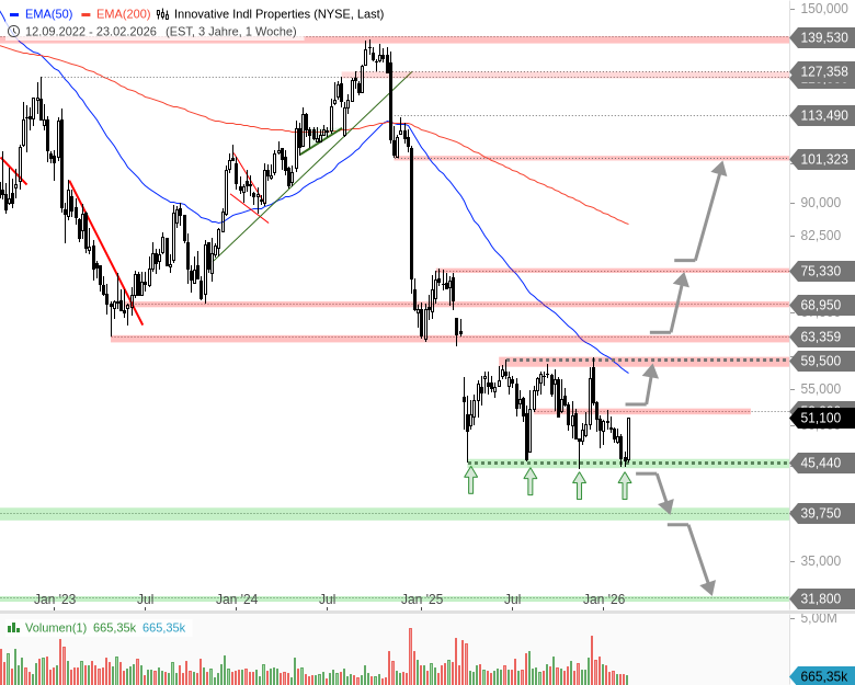 - Innovative Indl Properties – WKN: A2DGXH – ISIN: US45781V1017 – Kurs: 51,100 $ (NYSE)