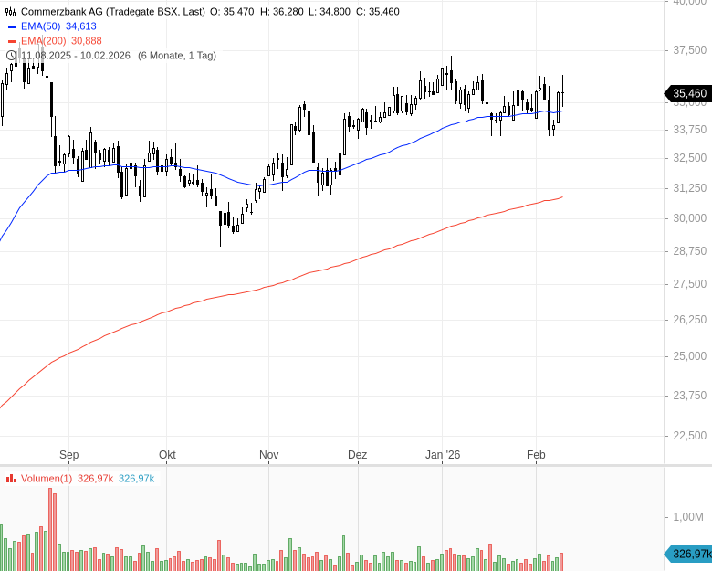 Fazit: Die Commerzbank hat im Geschäftsjahr 2025 etwas mehr verdient als in Aussicht gestellt. Damit fließt auch etwas mehr Geld in Form von Dividenden und Aktienrückkäufen an die Aktionäre als erwartet. Ihre vollständigen vorläufigen Zahlen veröffentlicht die Commerzbank am Mittwoch.