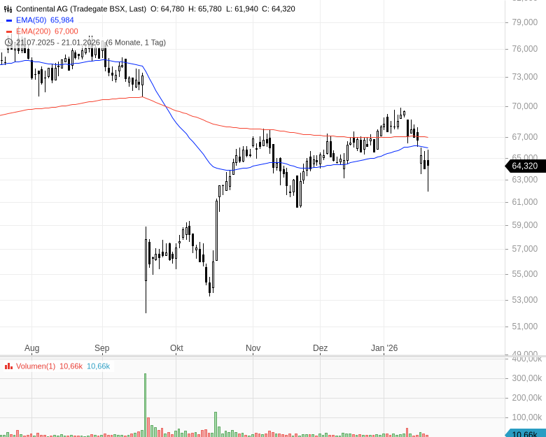 • Continental AG – WKN: 543900 – ISIN: DE0005439004 – Kurs: 63,200 € (XETRA)