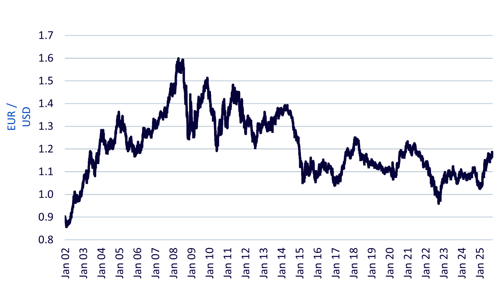 - Die Flexibilität über verschiedene Systeme hinweg erhöhen: Euro-Allokationen bieten zusätzliche Optionen und gleichen die Rolle des US-Dollar als sicherer Hafen mit zyklischem Wachstumspotenzial aus.