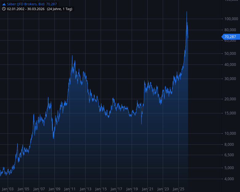 • Silber – WKN: 965310 – ISIN: XC0009653103 – Kurs: 70,287 $/oz. (JFD Brokers)