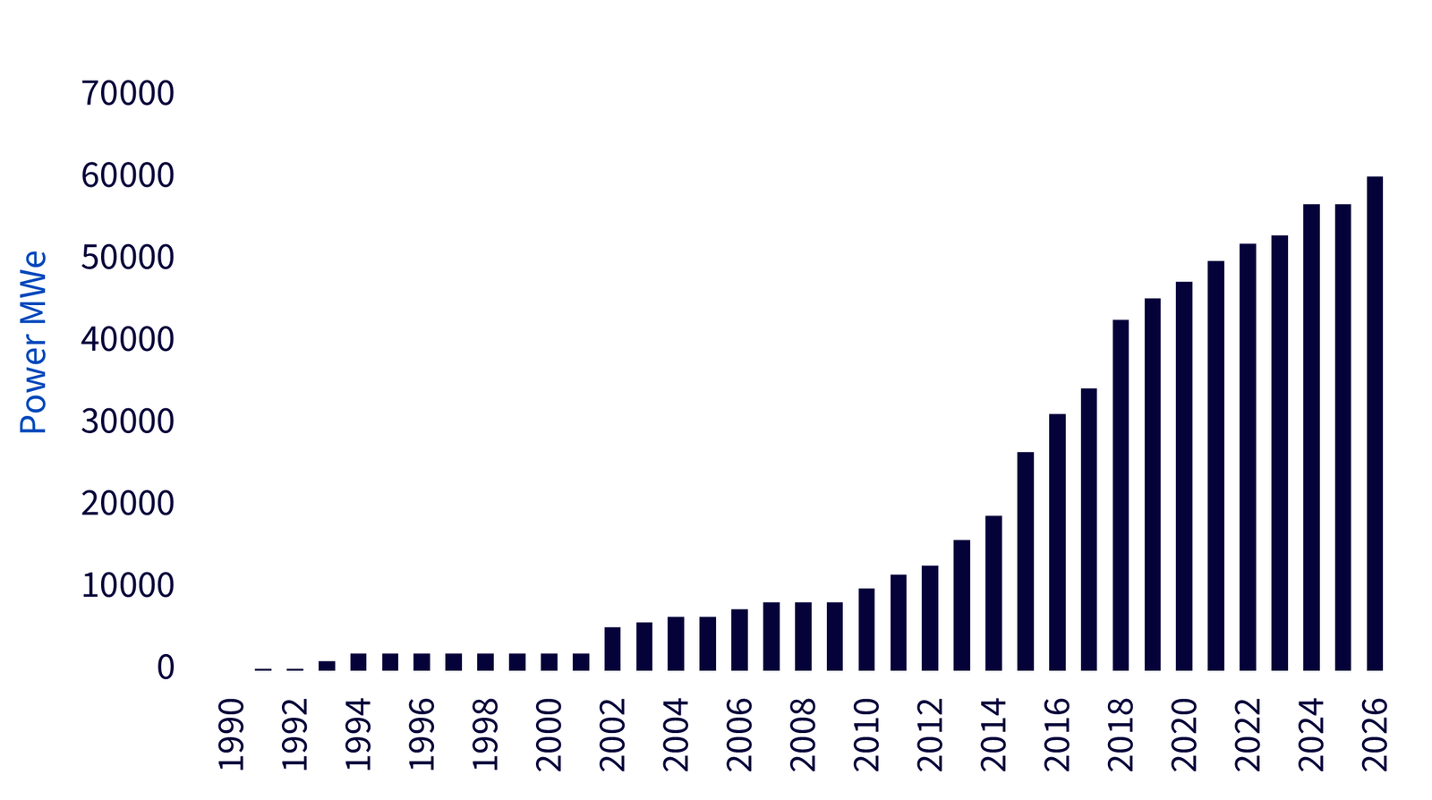 Abbildung 3: Reaktorkapazität im Bau (MWe)