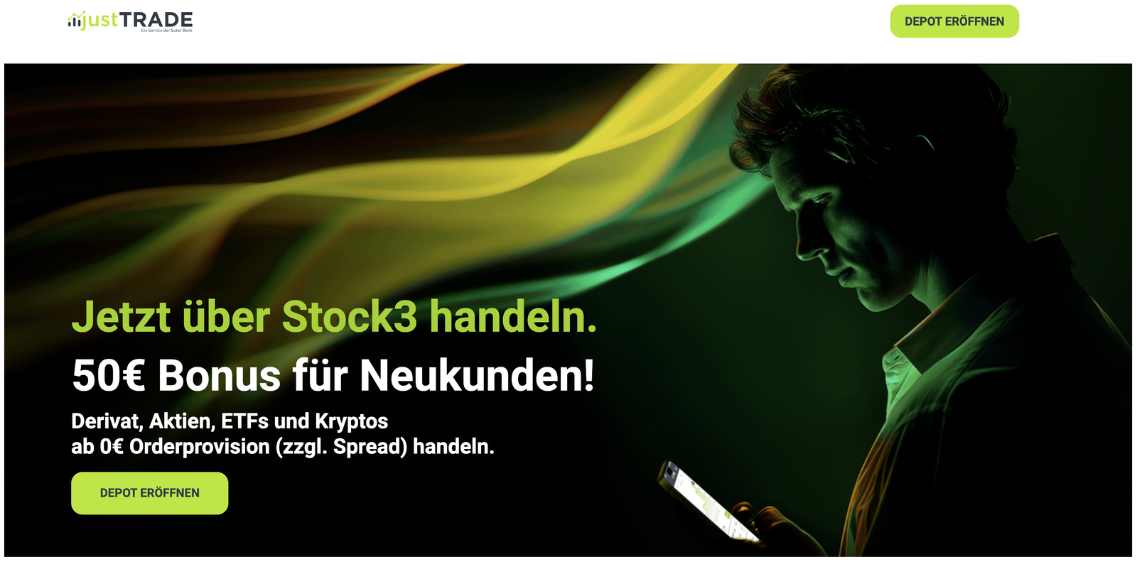 Mit einem justTrade Depot kannst Du Aktien- & ETF-Trades optimal direkt über stock3 abbilden.
