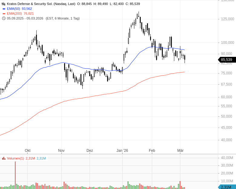 Kratos wiederum ist stark in Antriebssystemen wie Feststoffraketenmotoren sowie in Technologien rund um Hyperschallwaffen aktiv. Gerade in Bereichen wie Hyperschall- oder Präzisionsschlagfähigkeiten erwarten Analysten langfristig steigende Verteidigungsausgaben.