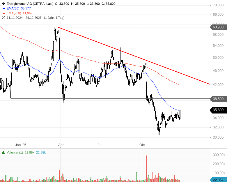 • Energiekontor AG – WKN: 531350 – ISIN: DE0005313506 – Kurs: 35,800 € (XETRA)