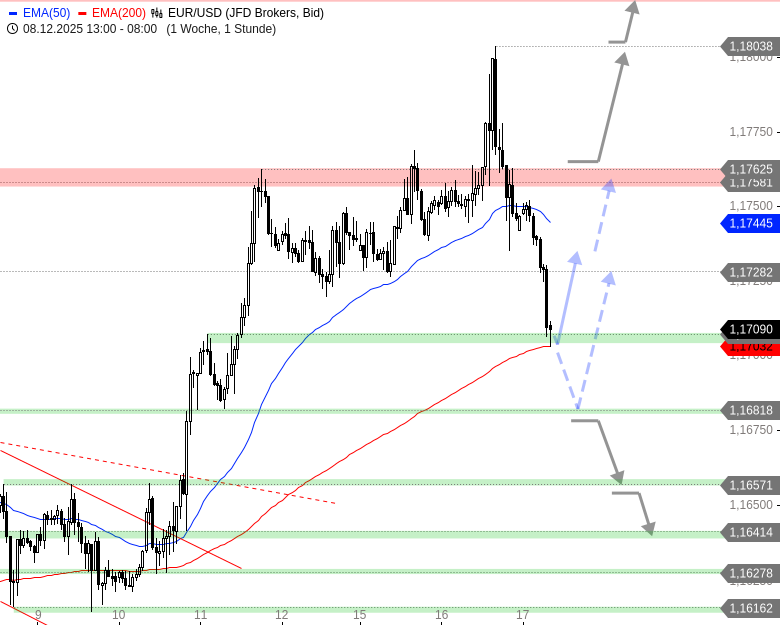 Wenn der Kurs unter 1,17 USD fällt, könnte eine Korrektur bis 1,1657 USD folgen. Habe ich das richtig verstanden, dass dies der wahrscheinlichste nächste Schritt ist?