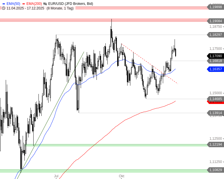 Die Unterstützung bei 1,1700 – 1,1707 USD erscheint kritisch für die kurzfristige Entwicklung. Sollte diese nicht halten, könnten weitere Verluste drohen.