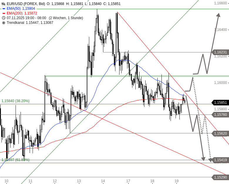 Die Konsolidierung seit dem 13. November 2025 ist ja schon eine Weile her – glaubt die Analyse, dass ein Durchbruch über 1,1594 USD tatsächlich die Trendwende signalisieren könnte, oder ist das eher ein kurzfristiges Zucken?