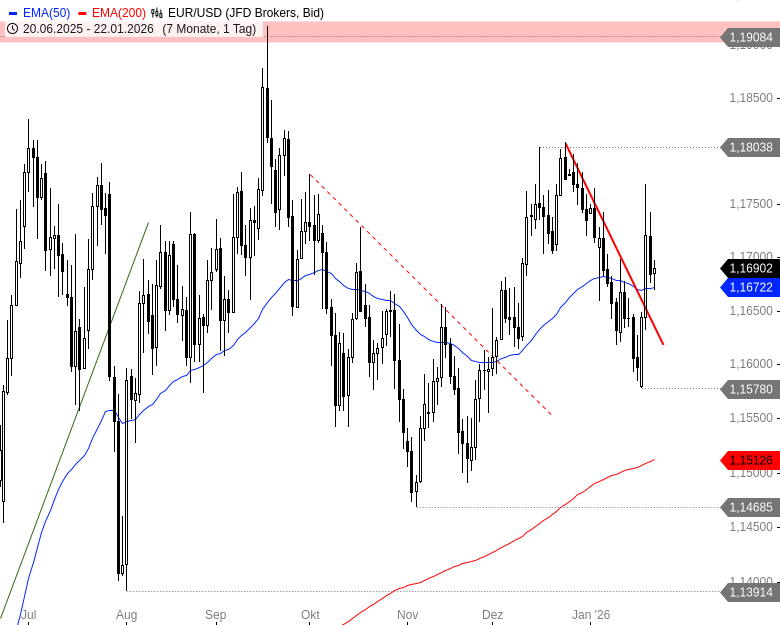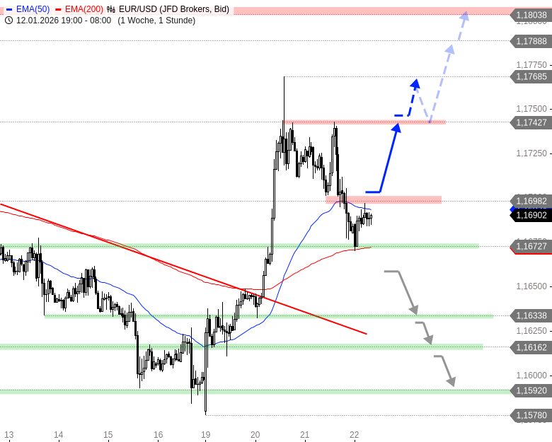 Wenn der Kurs nachhaltig über 1,1693 – 1,1701 USD klettert, wie in der Analyse beschrieben, wäre das ein klares Kaufsignal. Ich werde diesen Bereich genau beobachten.