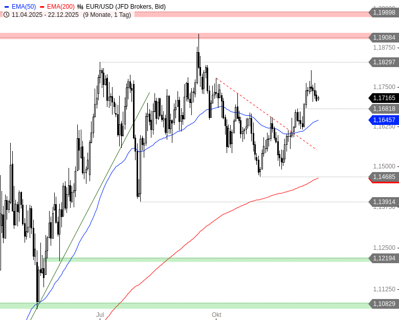 Die Unterstützungslinien bei 1,1682 und 1,1657 USD sind relativ nah beieinander. Wäre ein Durchbruch unter 1,17 USD also eine ernsthafte Gefahr für einen tieferen Kursrückgang?