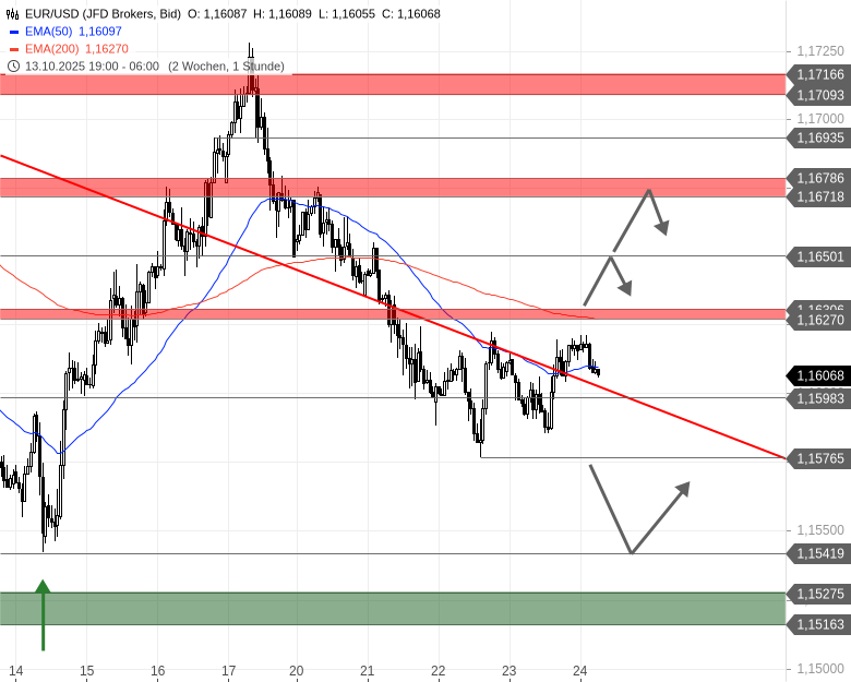Der aktuelle Kurs von 1,16072 $ liegt sehr nah an der ersten intraday-Unterstützung bei 1,1598 $. Ist das ein wichtiger Punkt für kurzfristige Entscheidungen?