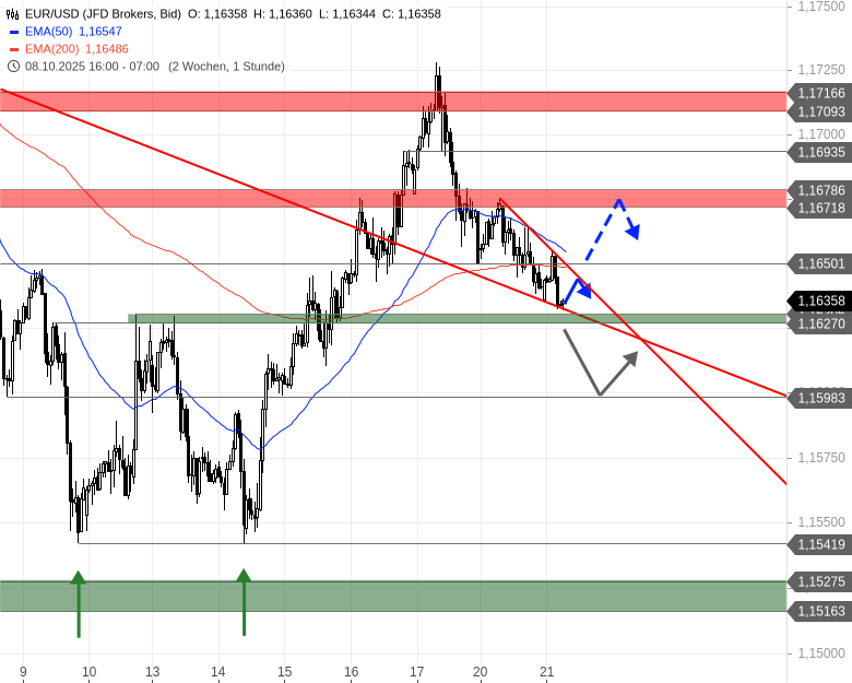 Intraday Unterstützungen: 1,1630/1,1627 + 1,1610 + 1,1600