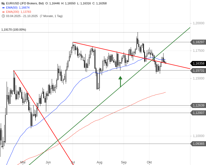 Mich wundert, dass der Artikel den Zeitraum vom 3. April 2025 bis zum 21. Oktober 2025 betrachtet. Gibt es spezielle Gründe für diese lange Zeitspanne in der Chartanalyse?