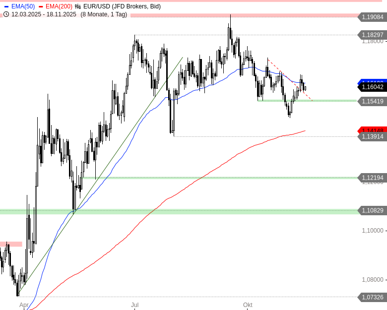 Ein Rückgang in Richtung 1,1542 USD wäre für mich ein guter Einstiegspunkt. Aber ist das ein realistisches Ziel, oder sollten wir mit tieferen Kursen rechnen?