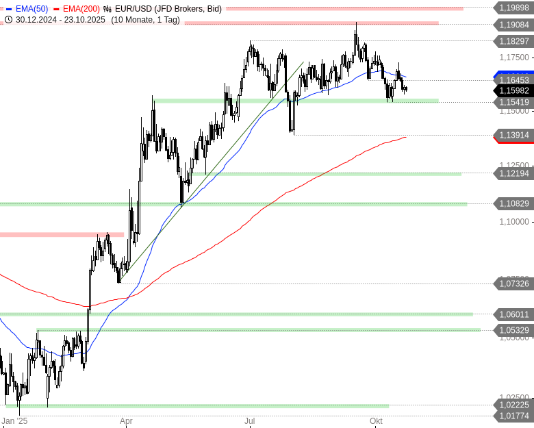 Die genannten Widerstände bei 1,1622-1,1624 und 1,1645-1,1652 USD erscheinen dicht beieinander; ein Ausbruch über diese könnte tatsächlich eine größere Erholung signalisieren.