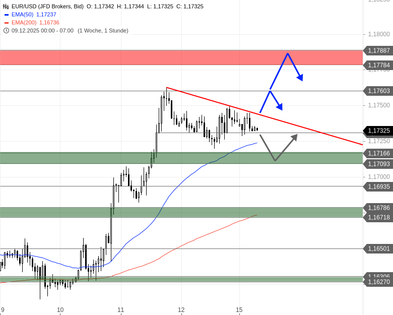 Die Nennung des EMA50 Stunden bei 1,1723 USD als Unterstützung ist hilfreich, aber wie verlässlich ist dieser Wert wirklich in einem so volatilen Markt?