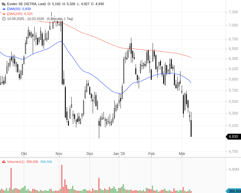 • Evotec SE – WKN: 566480 – ISIN: DE0005664809 – Kurs: 4,578 € (XETRA)
