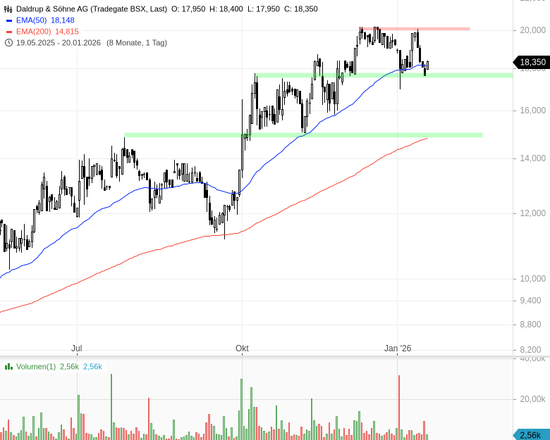 • Daldrup & Söhne AG – WKN: 783057 – ISIN: DE0007830572 – Kurs: 18,050 € (XETRA)
