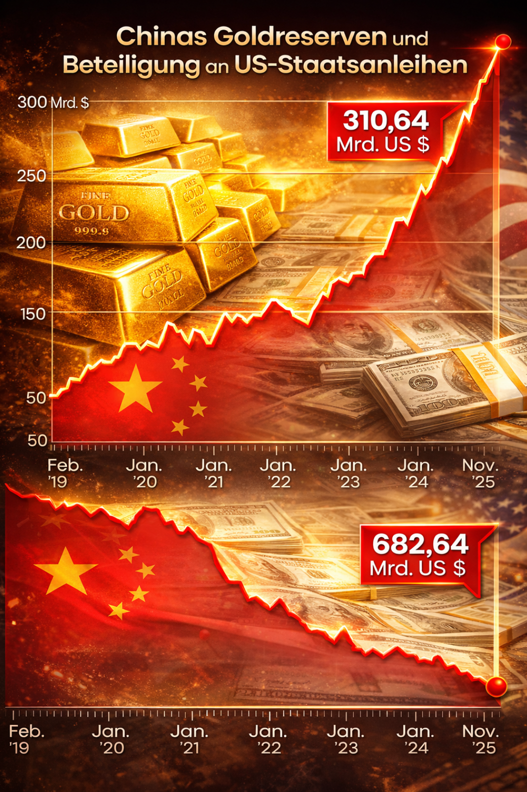 beim Goldmarkt verdichten sich die Signale. Viele Anleger schauen noch immer nur auf den laufenden Kurs und fragen sich, ob Gold nicht längst zu stark gestiegen sei. Für uns beim Rohstoff-König zählt seit jeher nicht nur der Preis, sondern vor allem das große Bild dahinter: Schuldenberge, geopolitische Spannungen, schwindendes Vertrauen in Papiergeld und eine Finanzordnung, die zunehmend unter Druck gerät.