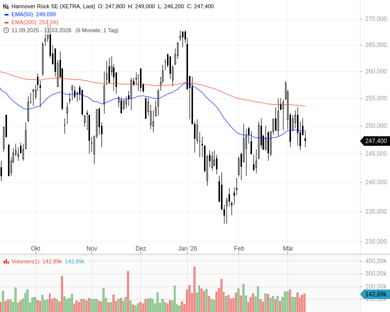 - Hannover Rück SE – WKN: 840221 – ISIN: DE0008402215 – Kurs: 247,400 € (XETRA)