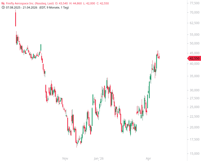 - Firefly Aerospace Inc. – WKN: A41ENY – ISIN: US31816X1063 – Kurs: 42,550 $ (Nasdaq)