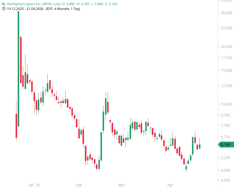- Starfighters Space Inc. – WKN: A40BLF – ISIN: US85529M1045 – Kurs: 6,160 $ (NYSE)