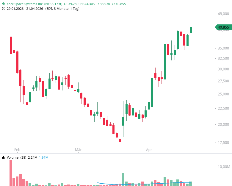 - York Space Systems Inc. – WKN: A41Y07 – ISIN: US9870841007 – Kurs: 40,855 $ (NYSE)