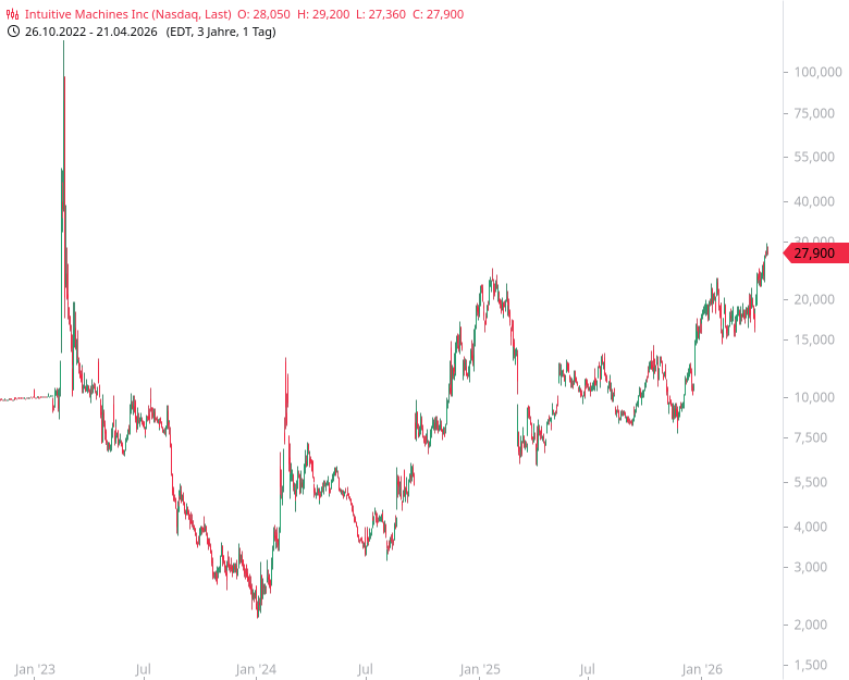 - Intuitive Machines Inc – ISIN: US46125A1007 – Kurs: 27,900 $ (Nasdaq)