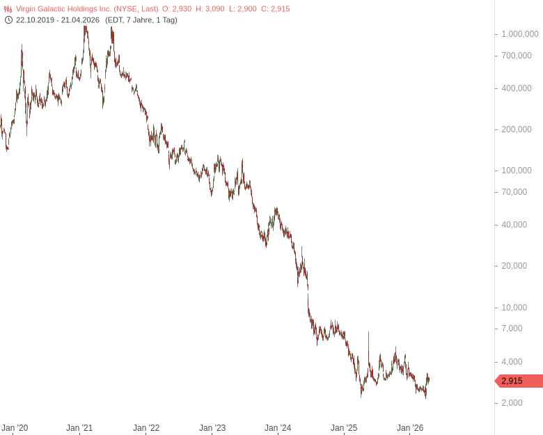 - Virgin Galactic Holdings Inc. – WKN: A40EFX – ISIN: US92766K4031 – Kurs: 2,915 $ (NYSE)