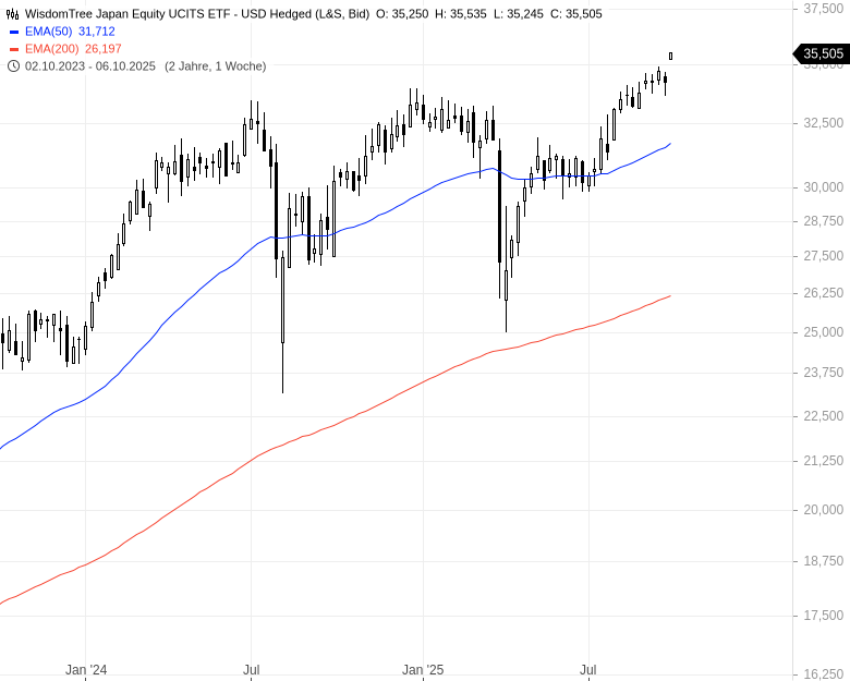 - WisdomTree Japan Equity UCITS ETF – USD Hedged – WKN: A14SCB – ISIN: IE00BVXC4854 – Kurs: 35,505 € (L&S)