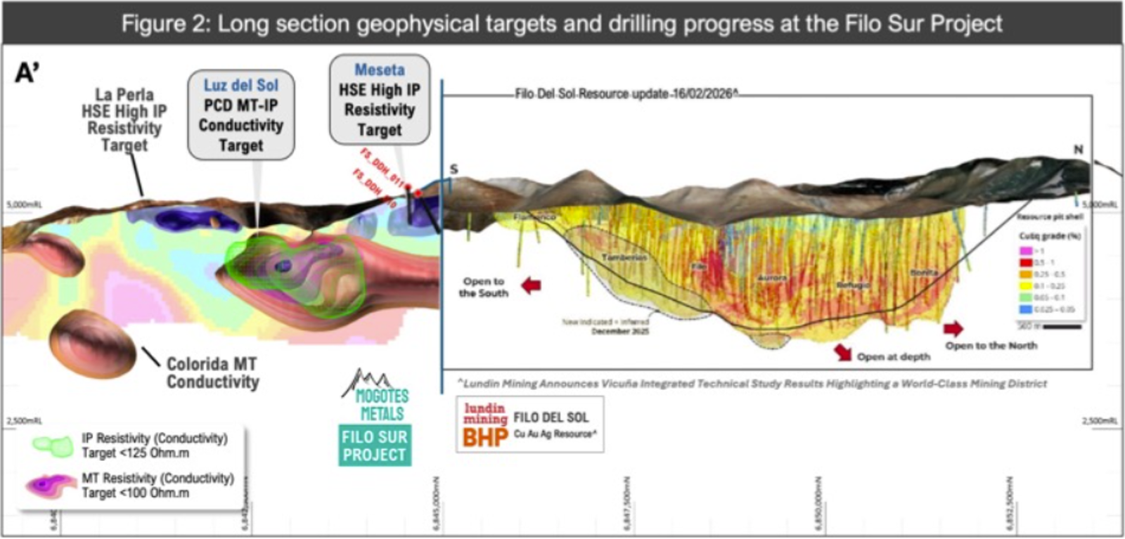 Mogotes Metals (WKN: A3ENQ6)ist nach jüngsten Unternehmensangaben ein Explorations- und Entwicklungsunternehmen mit Fokus auf Kupfer, Gold und Silber. Flaggschiff bleibt Filo Sur im Vicuña-Distrikt an der Grenze zwischen Argentinien und Chile. Das Projekt grenzt südlich an Filo del Sol an und liegt auf demselben Nord-Süd-Trend wie weitere bekannte Lagerstätten der Region. Wichtig ist dabei der ausdrückliche Unternehmenshinweis: Mineralisierung auf benachbarten oder angrenzenden Projekten ist nicht zwangsläufig repräsentativ für eine Mineralisierung auf Filo Sur.