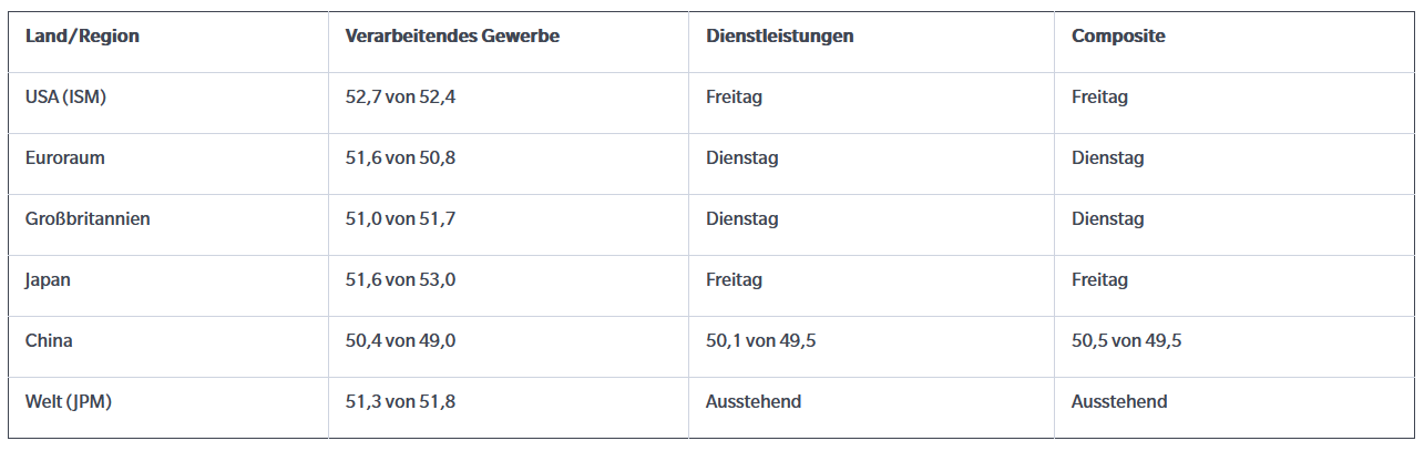 Dienstag: Dienstleistungs- und Composite-PMIs im Euroraum und Großbritannien, Bestellungen langlebiger Güter in den USA
