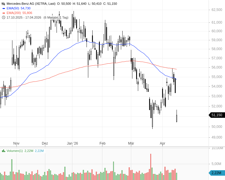 • Mercedes-Benz AG – WKN: 710000 – ISIN: DE0007100000 – Kurs: 51,150 € (XETRA)