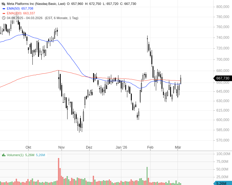 • Meta Platforms Inc – WKN: A1JWVX – ISIN: US30303M1027 – Kurs: 667,520 $ (Nasdaq)