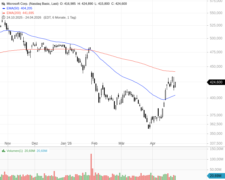 Fazit: Die Partnerschaft bleibt also erhalten, wenn auch in veränderter Form. Beide Unternehmen verweisen auf gemeinsame Projekte bei neuen Rechenzentren im Gigawattmaßstab, Spezialchips und Anwendungen in der Cybersicherheit. Die Botschaft ist klar: Microsoft und OpenAI bleiben eng verbunden, aber nicht mehr so eng, dass einer den anderen blockiert. In erster Reaktion fällt die Microsoft-Aktie, doch kann sich zuletzt auch wieder erholen.