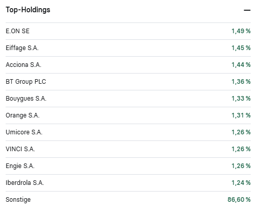 Die Nennung von Unternehmen wie E.ON und Iberdrola im Portfolio zeigt, dass der ETF auch in erneuerbare Energien investiert, was ich positiv finde.