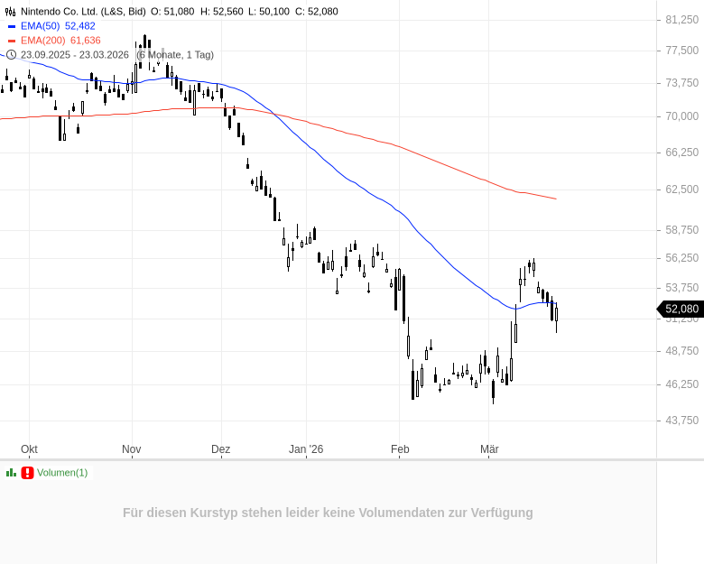 • Nintendo Co. Ltd. – WKN: 864009 – ISIN: JP3756600007 – Kurs: 52,080 € (L&S)