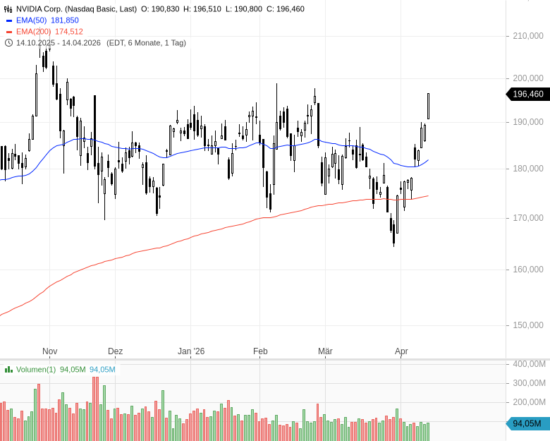 • NVIDIA Corp. – WKN: 918422 – ISIN: US67066G1040 – Kurs: 196,460 $ (Nasdaq)