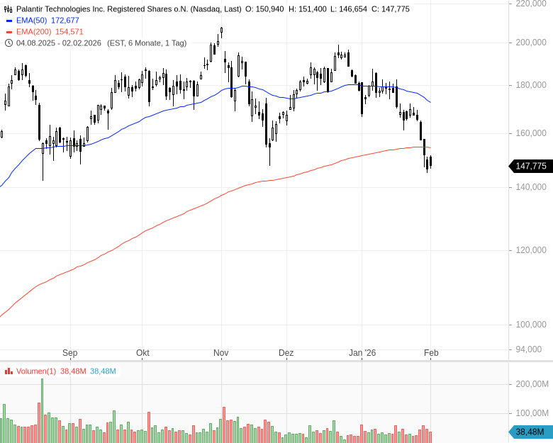 „Palantirs Rule-of-40-Wert liegt mittlerweile bei unglaublichen 127 %. Im letzten Quartal stieg unser Umsatz in den USA im Jahresvergleich um 93 %, der US-Geschäftskundenumsatz wuchs sogar um 137 %. Zudem geben wir eine Umsatzwachstumsprognose für 2026 von 61 % im Jahresvergleich bekannt„, sagte CEO Alex Karp. „Palantir ist das einzige Unternehmen, das sich ausschließlich darauf konzentriert, die durch den rasanten Fortschritt von KI-Modellen ermöglichte operative Hebelwirkung zu skalieren – ein Trend, den wir bereits als ‚Commodity Cognition‘ bezeichneten, lange bevor andere denselben Begriff übernahmen.„