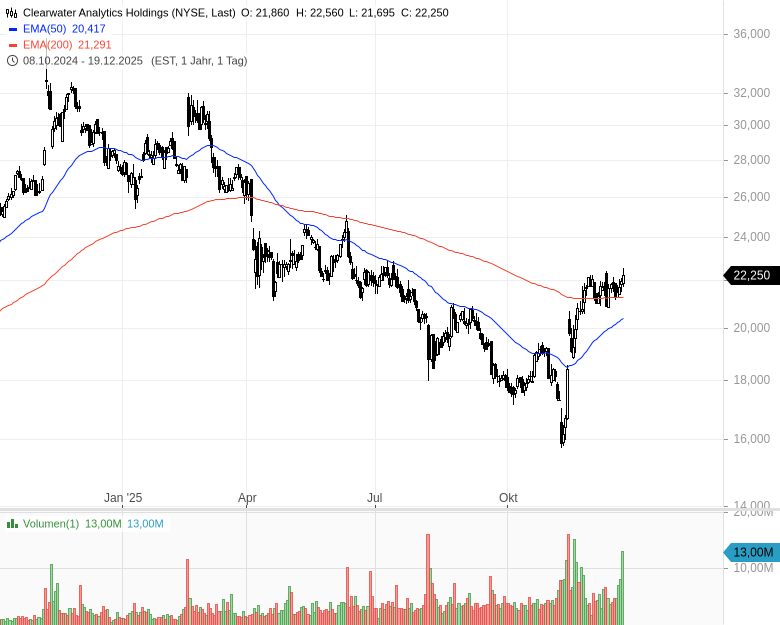 - Clearwater Analytics Holdings – ISIN: US1851231068 – Kurs: 22,250 $ (NYSE)