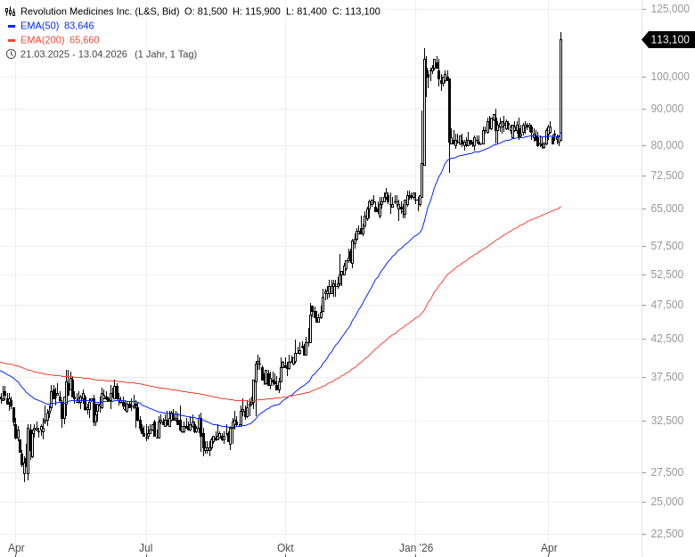 Fazit: Revolution Medicines bleibt ein heißes Übernahmeziel im Biotech-Sektor. Bleibt es beim heutigen Kurssprung, müssen Interessenten aber 6 Mrd. USD zusätzlich auf den Tisch legen. In einer ähnlichen Situation befindet sich aktuell Abivax. Auch hier stehen wichtige Studiendaten an und Big Pharma hat wohl schon angeklopft.